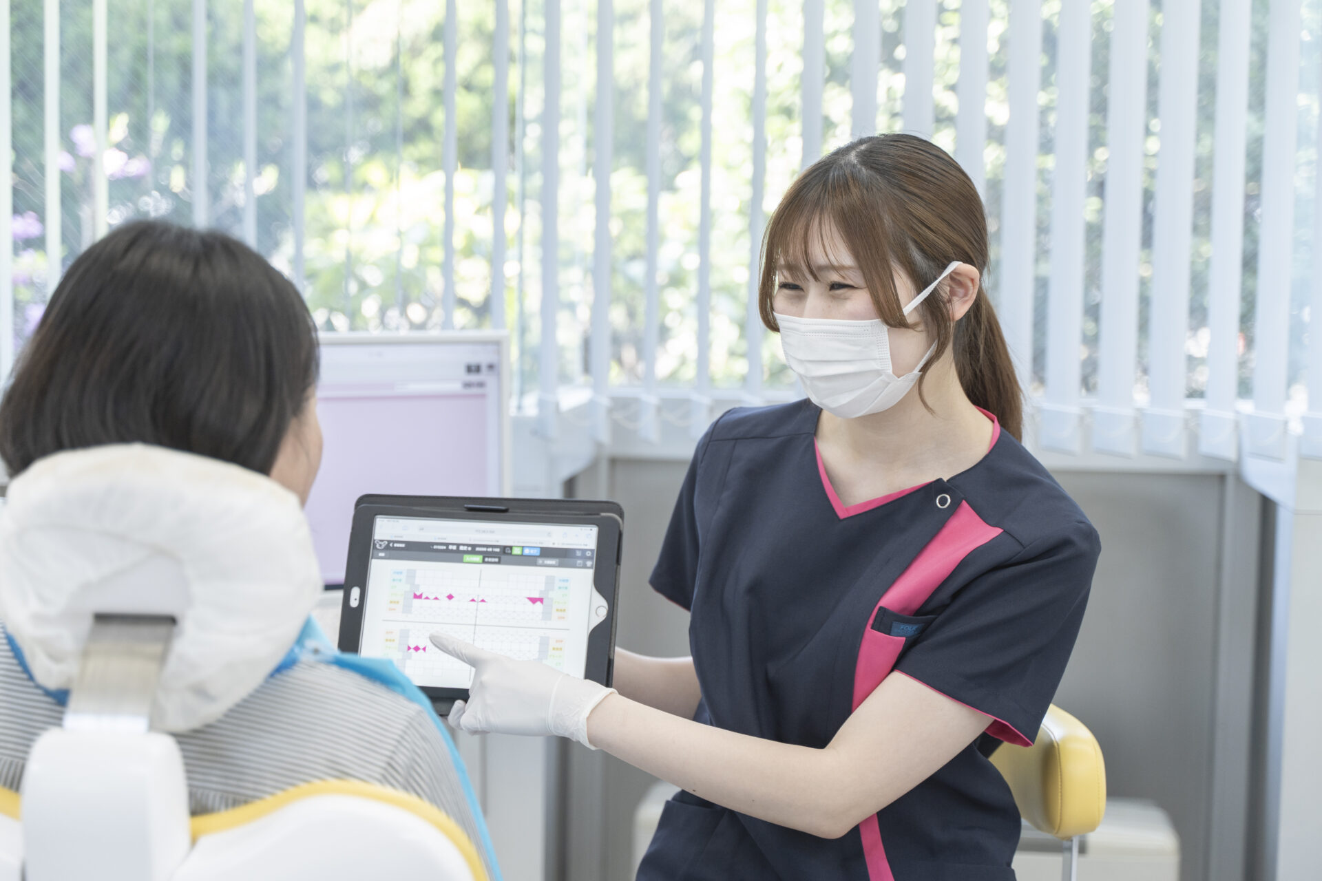 治療の効果を持続させるため、またお口の健康を維持するために、痛みに配慮した丁寧なメンテナンスを行います。歯ブラシや歯間ブラシ、フロスなどのご説明とご指導をいたします。